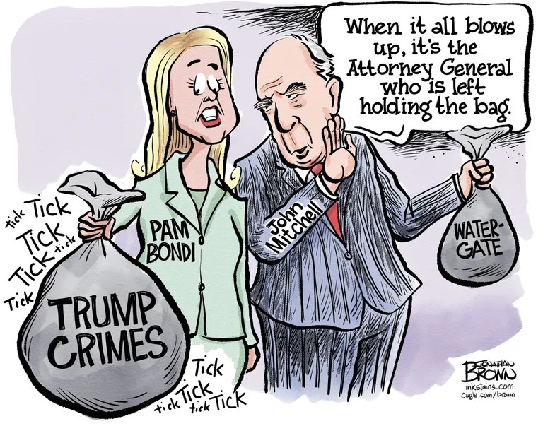 Being a decades-long Richard Nixon history buff allows me, at times, to put current political events in the context of what our nation endured in the 1970s. As news gleefully spread that Pam Bondi was removed as the attorney general today, it was a natural connection for me to think about John Mitchell, the attorney general during Nixon’s first term in office.